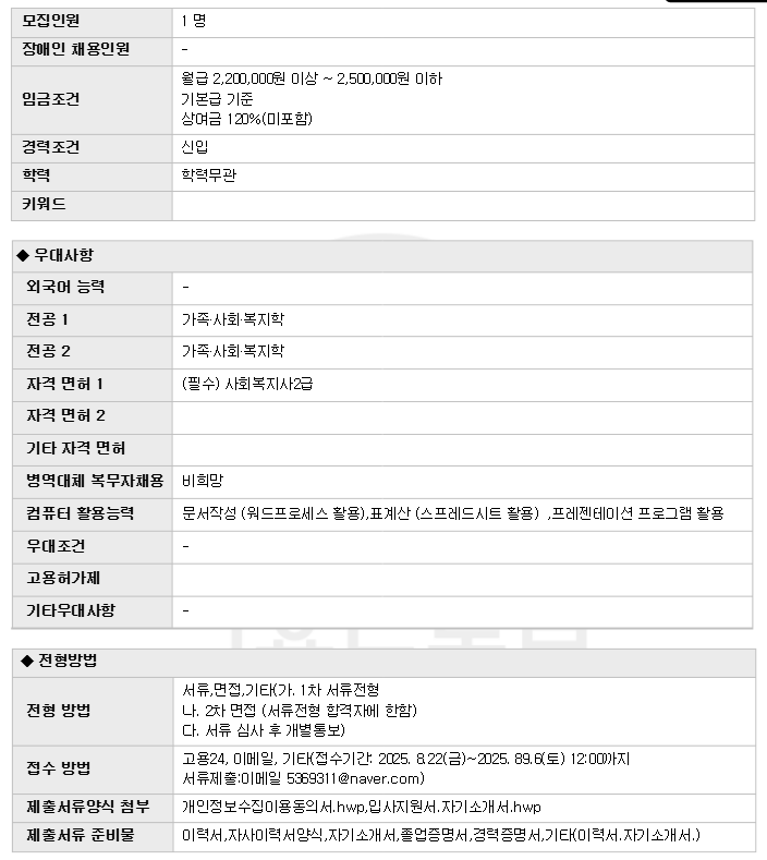 | ÀÌÀü±Û | ½ÅÅÂÀÎÀç°¡º¹Áö¼¾ÅÍ »çȸº¹Áö»ç( °æ·ÂÀÚ) ¸ðÁý | ||