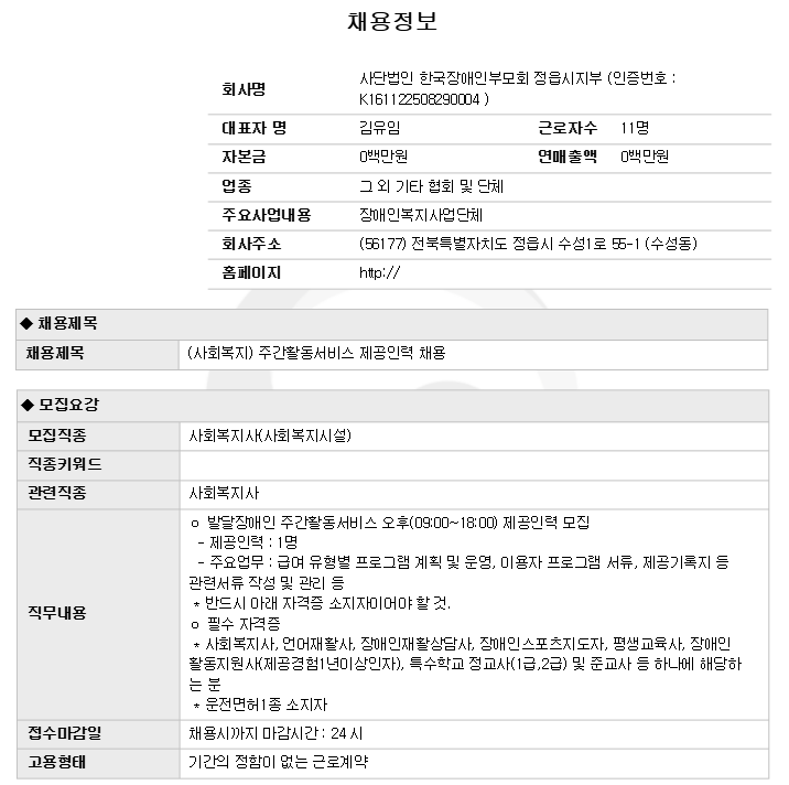 | (»ç)Çѱ¹Àå¾ÖÀκθðȸ Á¤À¾½ÃÁöºÎ ÁÖ°£È°µ¿¼ºñ½º Á¦°øÀη ä¿ë | |||