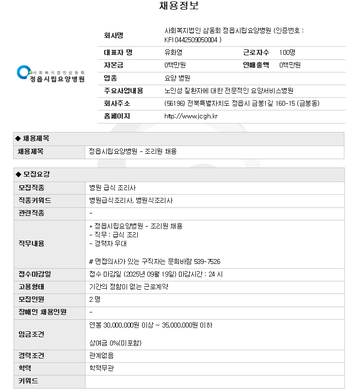 | Á¤À¾½Ã¸³¿ä¾çº´¿ø Á¶¸®¿ø ä¿ë | |||