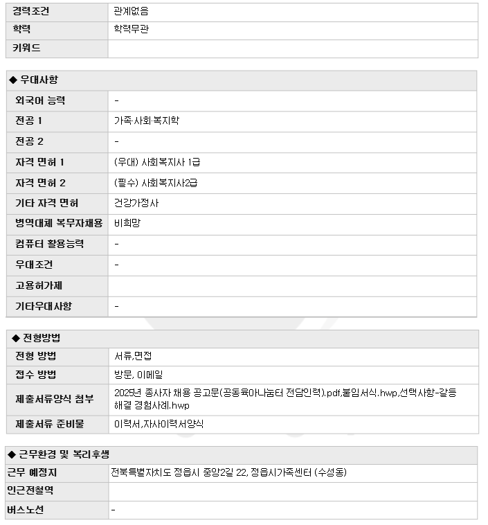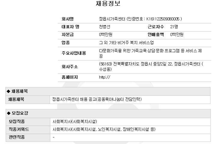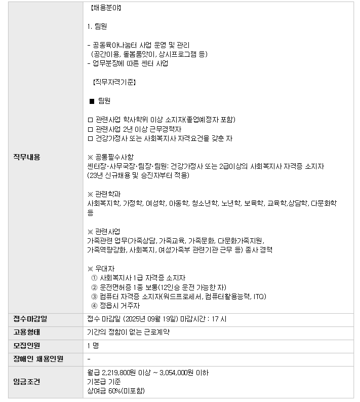| Á¤À¾½Ã°¡Á·¼¾ÅÍ °øµ¿À°¾Æ³ª´®ÅÍ Àü´ãÀη ä¿ë | |||