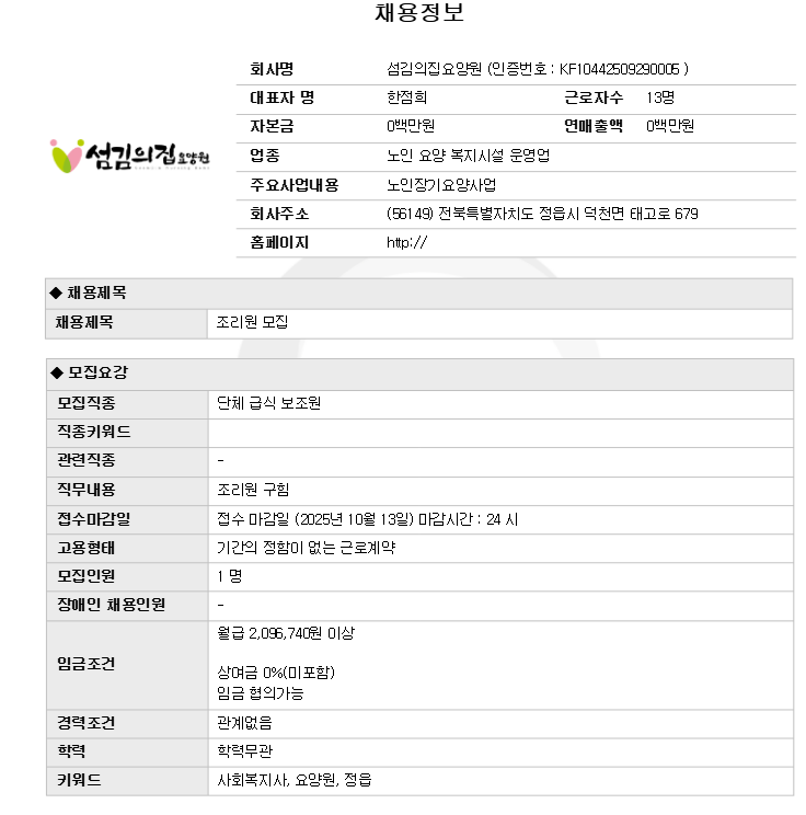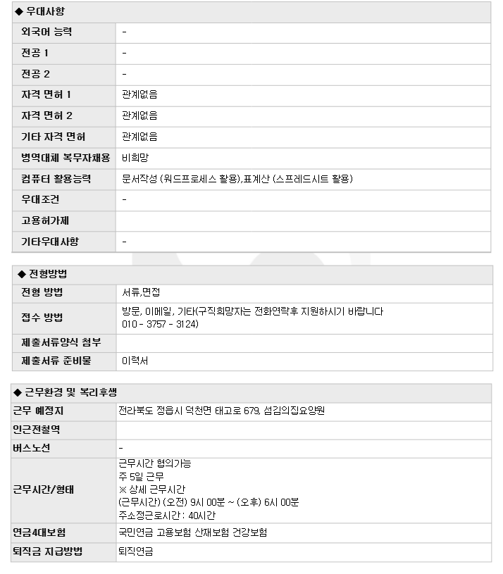 | ¼¶±èÀÇÁý ¿ä¾ç¿ø Á¶¸®¿ø ¸ðÁý | |||