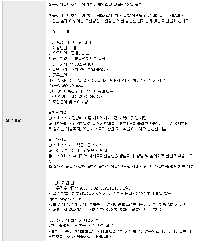 | Á¤À¾½Ã¾Æµ¿º¸È£Àü¹®±â°ü ±â°£Á¦ °è¾àÁ÷ (»ó´ã¿ø)ä¿ë°ø°í | |||