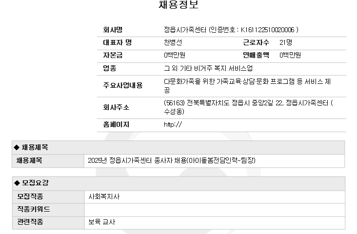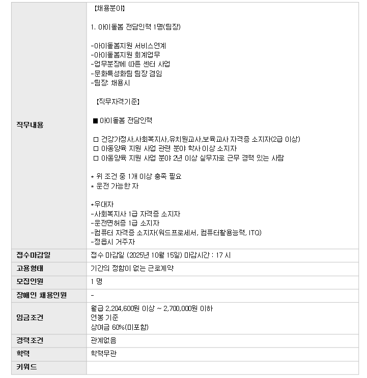 | Á¤À¾½Ã°¡Á·¼¾ÅÍ ¾ÆÀ̵¹º½Àü´ãÀηÂ-ÆÀÀå ä¿ë | |||