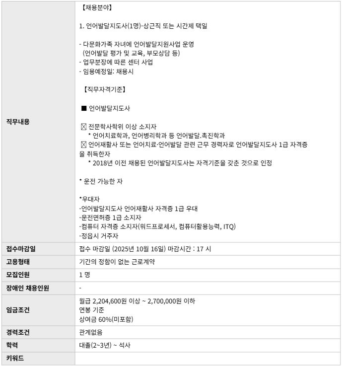 | 2025³â Á¤À¾½Ã°¡Á·¼¾ÅÍ Á¾»çÀÚ Ã¤¿ë(¾ð¾î¹ß´ÞÁöµµ»ç) | |||