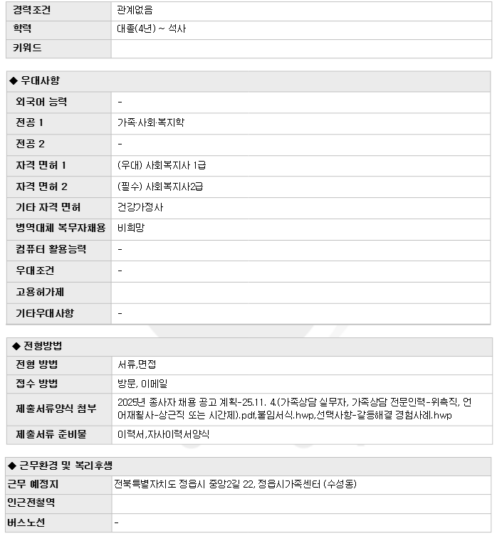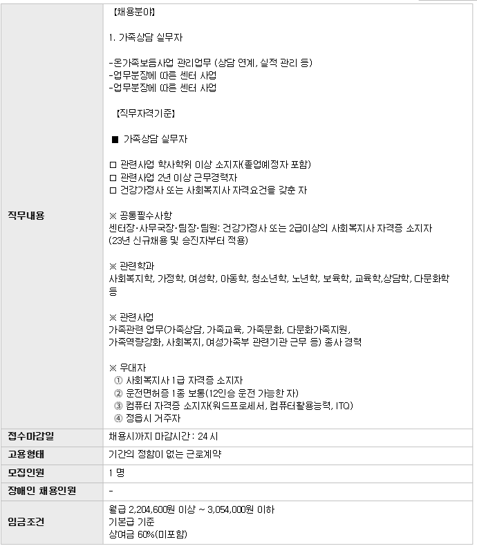 | Á¤À¾½Ã°¡Á·¼¾ÅÍ Á¾»çÀÚ Ã¤¿ë°ø°í (°¡Á·»ó´ã ½Ç¹«ÀÚ) | |||