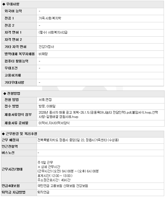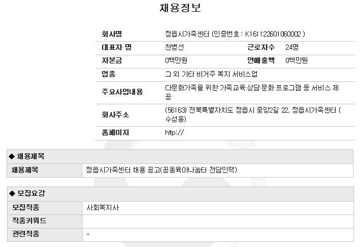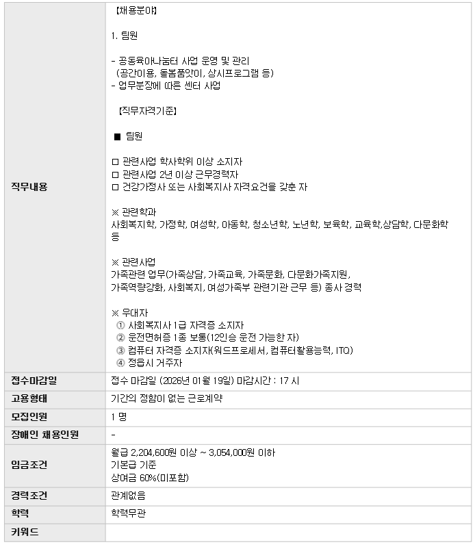 | Á¤À¾½Ã°¡Á·¼¾ÅÍ Ã¤¿ë °ø°í(°øµ¿À°¾Æ³ª´®ÅÍ Àü´ãÀηÂ) | |||
