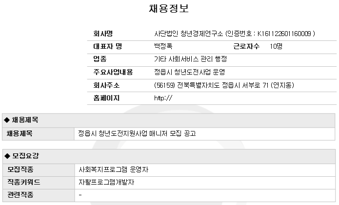 | »ç´Ü¹ýÀΠû³â°æÁ¦¿¬±¸¼Ò Á¤À¾½Ã û³âµµÀüÁö¿ø»ç¾÷ ¸Å´ÏÀú ¸ðÁý °ø°í | |||