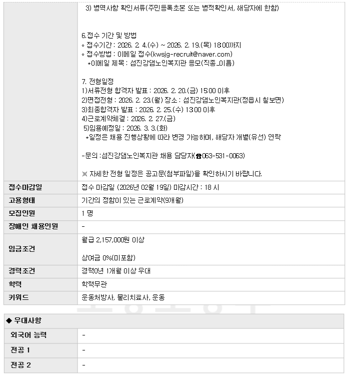 | [¼¶Áø° °ø°í 2026-1] ¼¶Áø°´ï³ëÀκ¹Áö°ü Á¾»çÀÚ °ø°³ ä¿ë Àç°ø°í 1Â÷ (¿îµ¿Ã³¹æ»ç) | |||