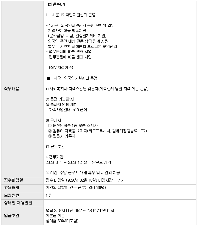 | Á¤À¾½Ã°¡Á·¼¾ÅÍ Ã¤¿ë °ø°í(1½Ã±º 1¿Ü±¹ÀÎÁö¿ø¼¾ÅÍ ¿î¿µ) | |||