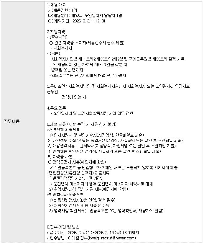 | ¼¶Áø°´ï³ëÀκ¹Áö°ü Á¾»çÀÚ °ø°³ ä¿ë(³ëÀÎÀÏÀÚ¸® ´ã´çÀÚ) | |||