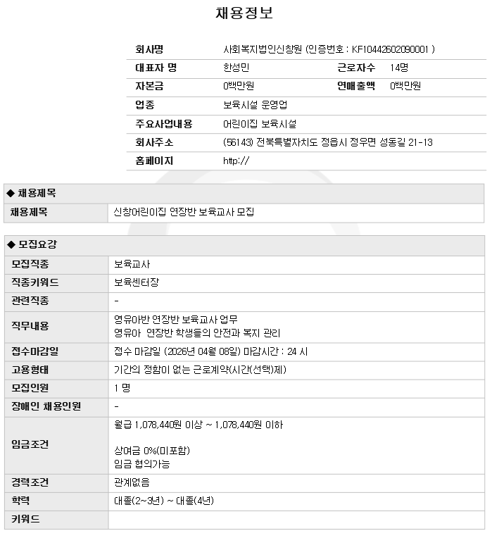 | ½Åâ¾î¸°ÀÌÁý ¿¬Àå¹Ý º¸À°±³»ç ¸ðÁý | |||
