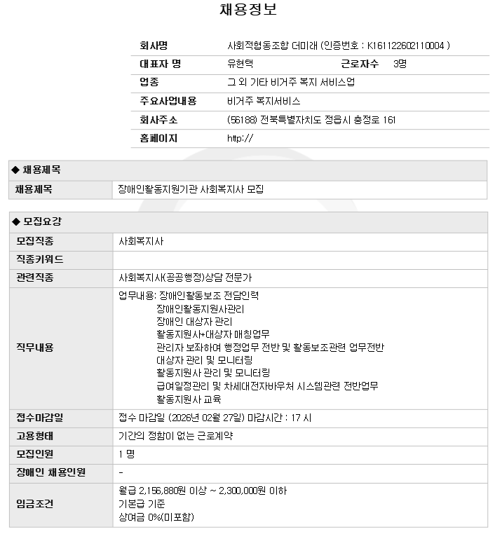 | <»çȸÀûÇùµ¿Á¶ÇÕ ´õ¹Ì·¡> Àå¾ÖÀÎȰµ¿Áö¿ø±â°ü »çȸº¹Áö»ç ¸ðÁý | |||