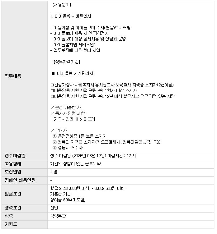 | Á¤À¾½Ã°¡Á·¼¾ÅÍ Ã¤¿ë °ø°í(¾ÆÀ̵¹º½ »ç·Ê°ü¸®»ç) | |||