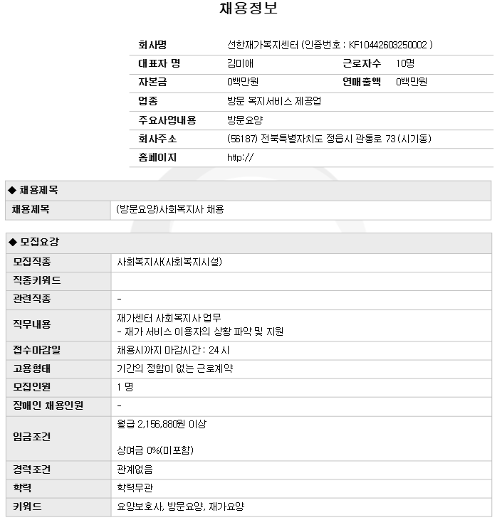 | ¼±ÇÑÀç°¡º¹Áö¼¾ÅÍ (¹æ¹®¿ä¾ç)»çȸº¹Áö»ç ä¿ë | |||