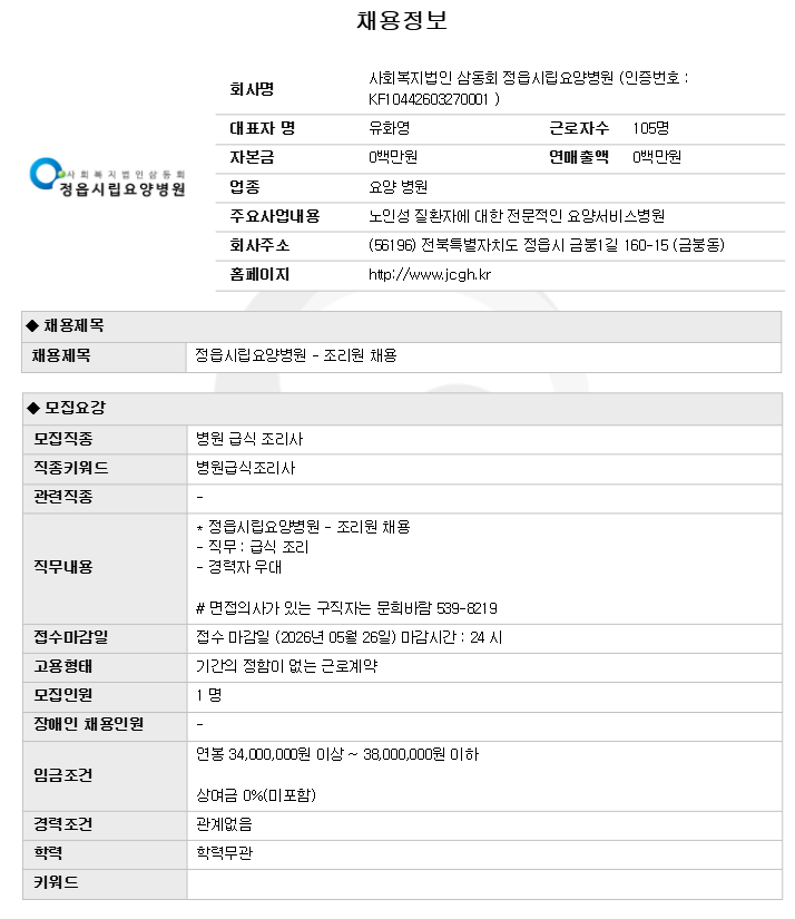| »çȸº¹Áö¹ýÀÎ »ïµ¿È¸ Á¤À¾½Ã¸³¿ä¾çº´¿ø - Á¶¸®¿ø ä¿ë | |||