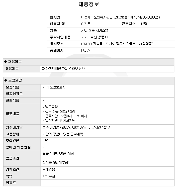| ³ª´®Àç°¡³ëÀκ¹Áö¼¾ÅÍ Àç°¡¼¾ÅÍÁ÷¿ø¸ðÁý(¿ä¾çº¸È£»ç) | |||