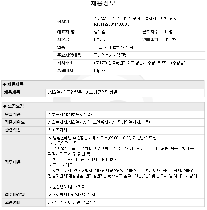 | »ç´Ü¹ýÀÎ Çѱ¹Àå¾ÖÀκθðȸ Á¤À¾½ÃÁöºÎ (»çȸº¹Áö) ÁÖ°£È°µ¿¼ºñ½º Á¦°øÀη ä¿ë | |||