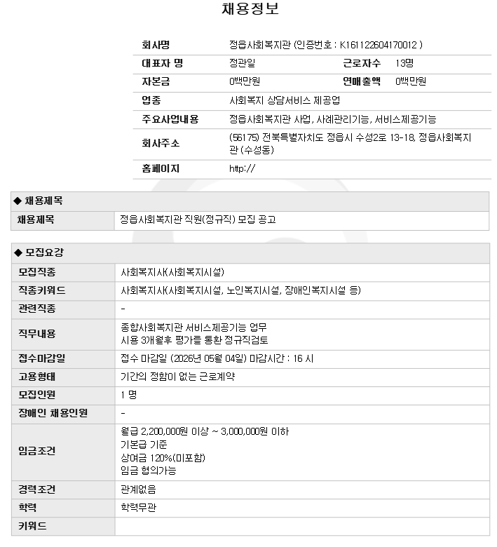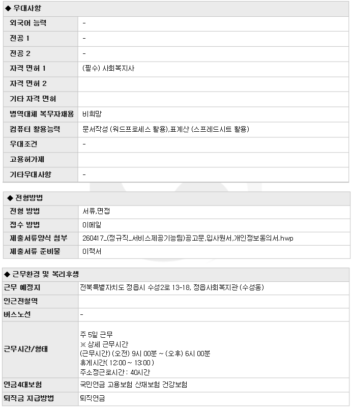 | Á¤À¾»çȸº¹Áö°ü Á÷¿ø(Á¤±ÔÁ÷) ¸ðÁý °ø°í | |||